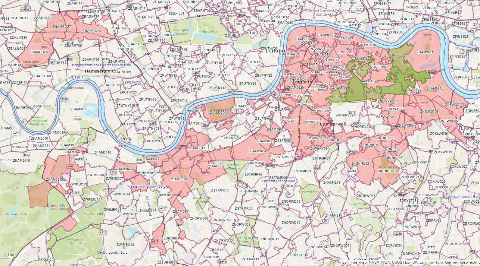 KT1, KT8, KT12, SW4, SW6, SW8, SW13, SW11, SW14, SW15, SW17 SW18, SW19, TW1, TW2, TW3, TW4, TW7, TW8, TW9, TW10, TW11, TW12, TW13, TW15, TW16, TW17, W3, W4, W10, W12