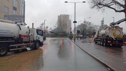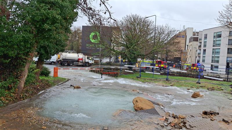 Our team are on site and have stopped the water flooding in the area. We are working with the fire services and police to keep everyone safe. Traffic controls are also in place to protect the public.